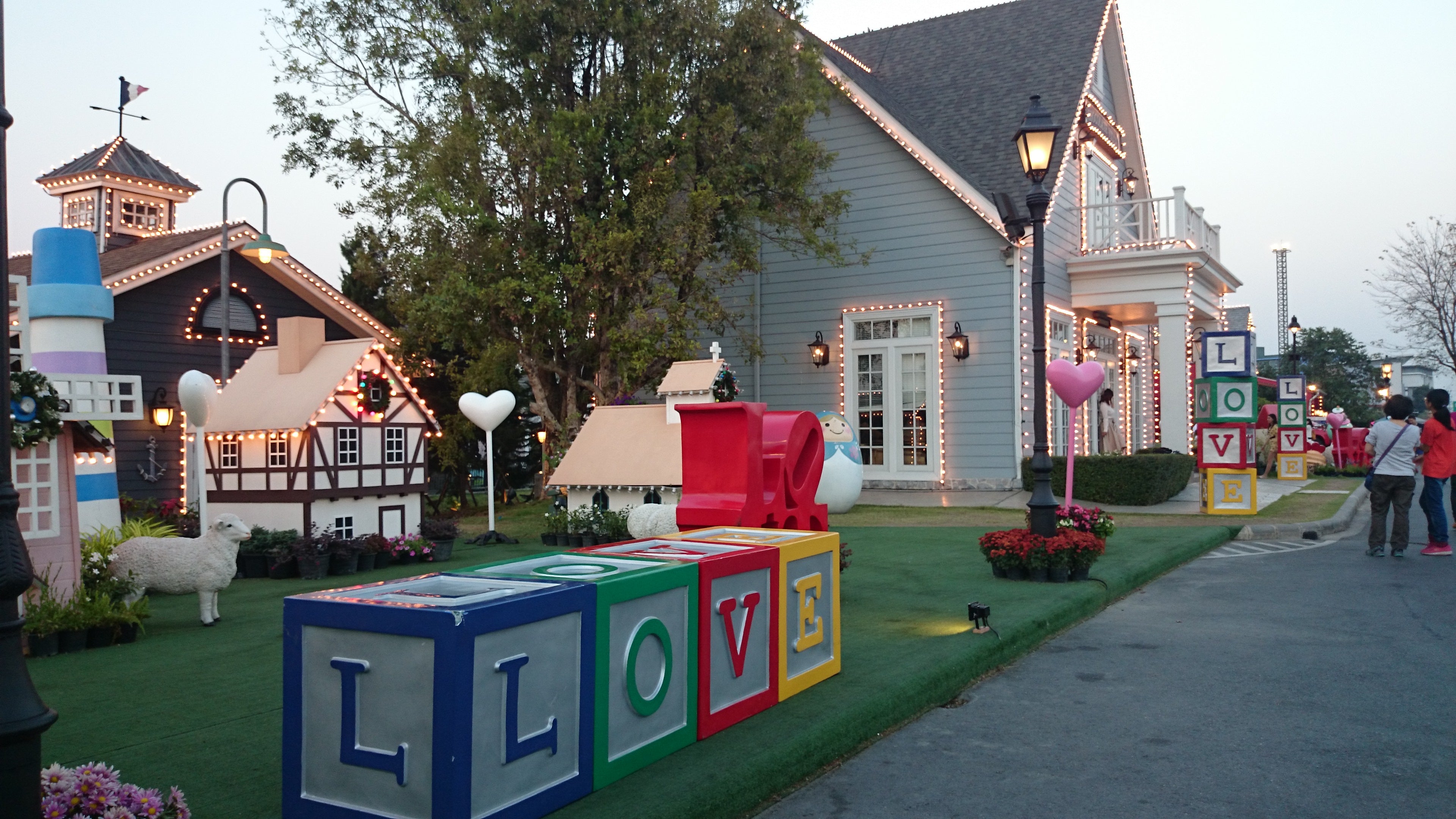 Themed decorations change with festivals—Halloween, Christmas, Valentine’s, Songkran—and nightly fairy-light displays create a romantic vibe