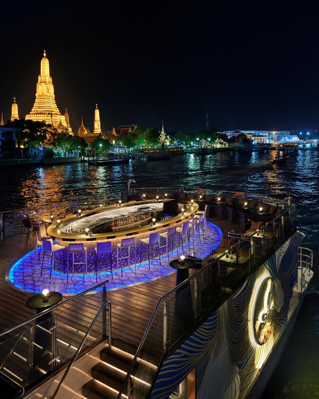 Experience Bangkok’s most refined dinner cruise aboard the Saffron Cruise by Banyan Tree, a luxurious journey along the Chao Phraya River. This elegant evening combines award-winning Thai cuisine with panoramic views of Bangkok’s illuminated landmarks. As you glide past iconic attractions such as Wat Arun, the Grand Palace, and Rama VIII Bridge, indulge in a carefully curated multi-course menu crafted by expert chefs. With attentive service, a serene ambience, and stylish décor, Saffron Cruise is perfect for romantic dinners, special celebrations, or travelers seeking an upscale river experience in Bangkok.