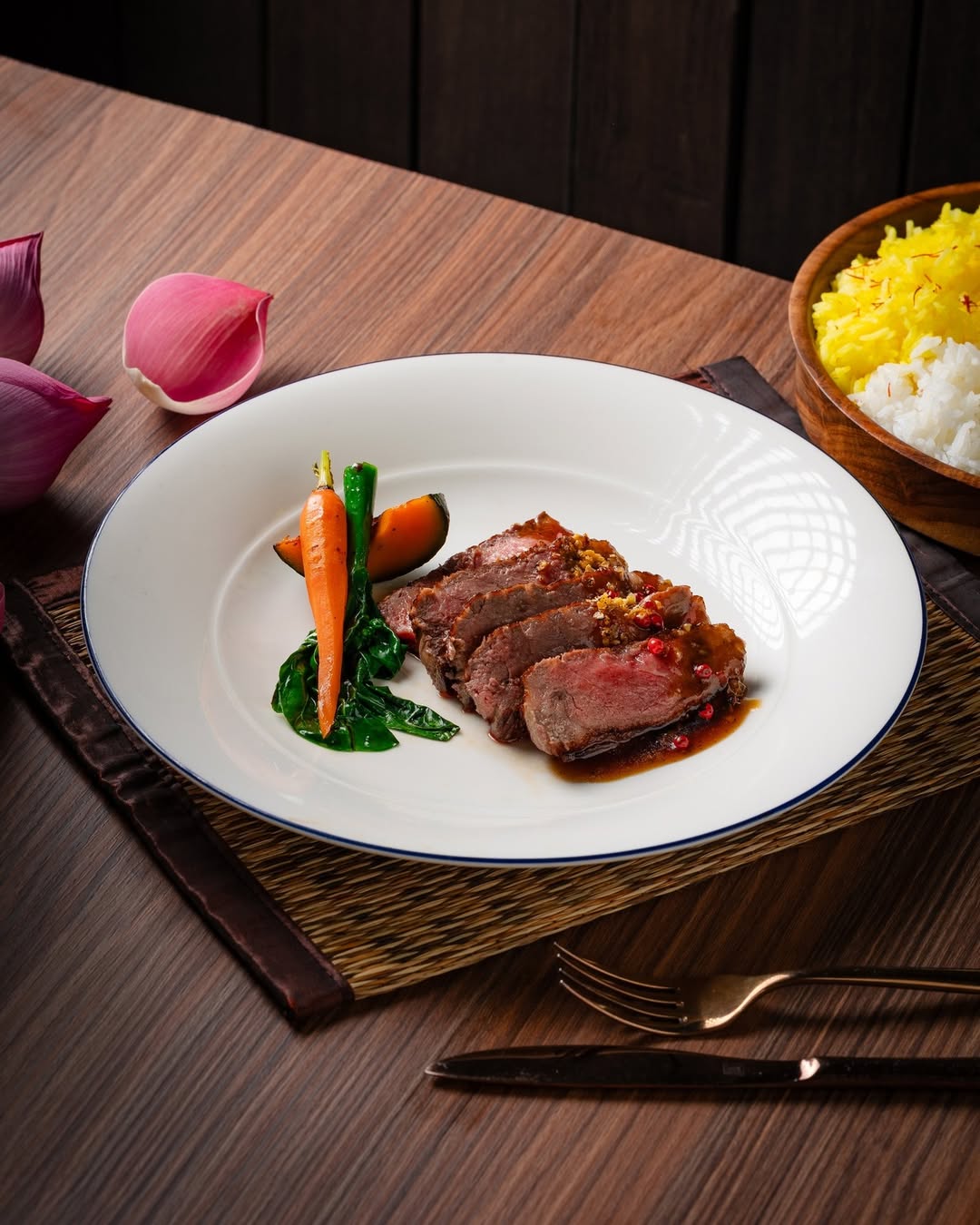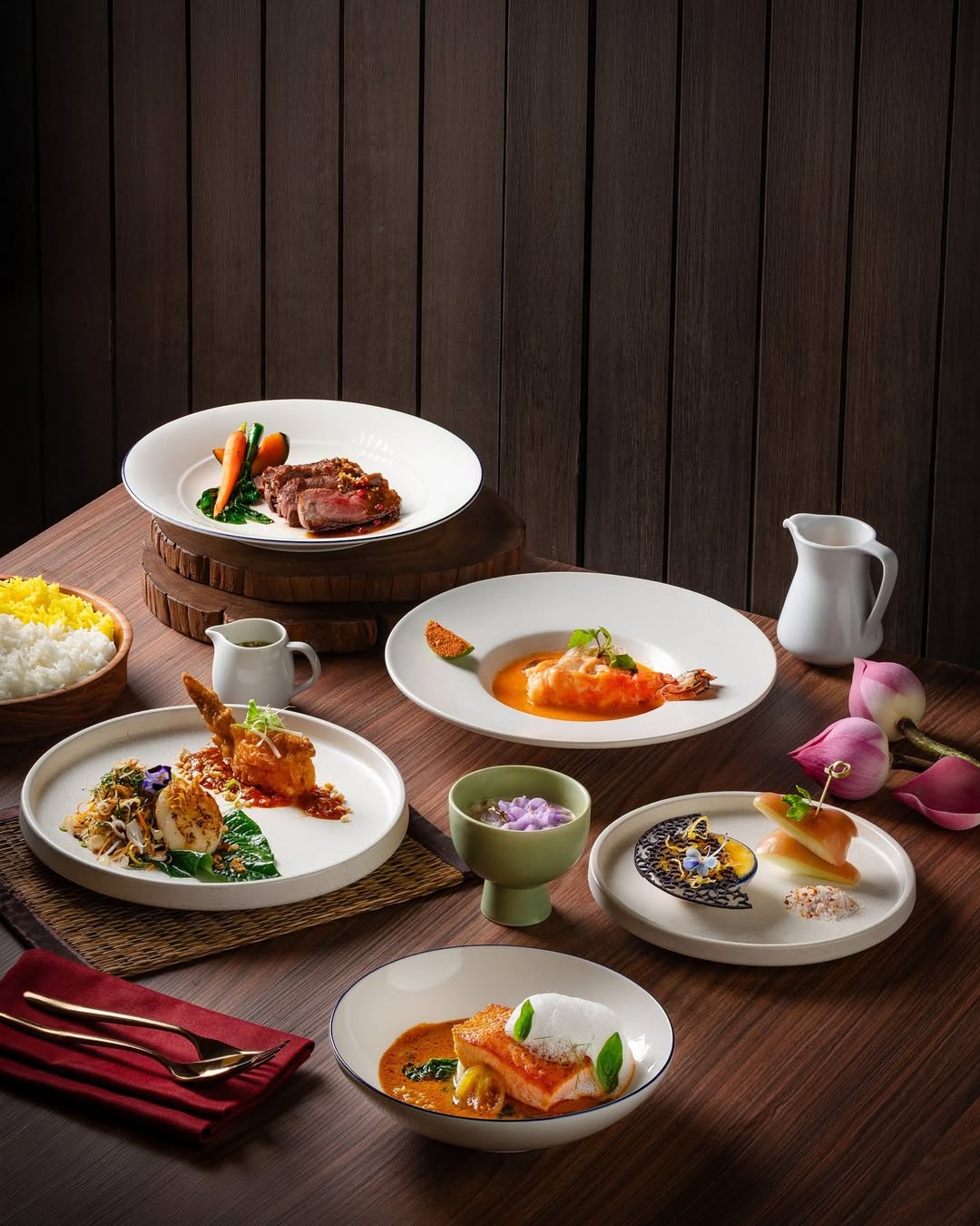 Set menu or tasting menu (Thai / international fusion, as selected)